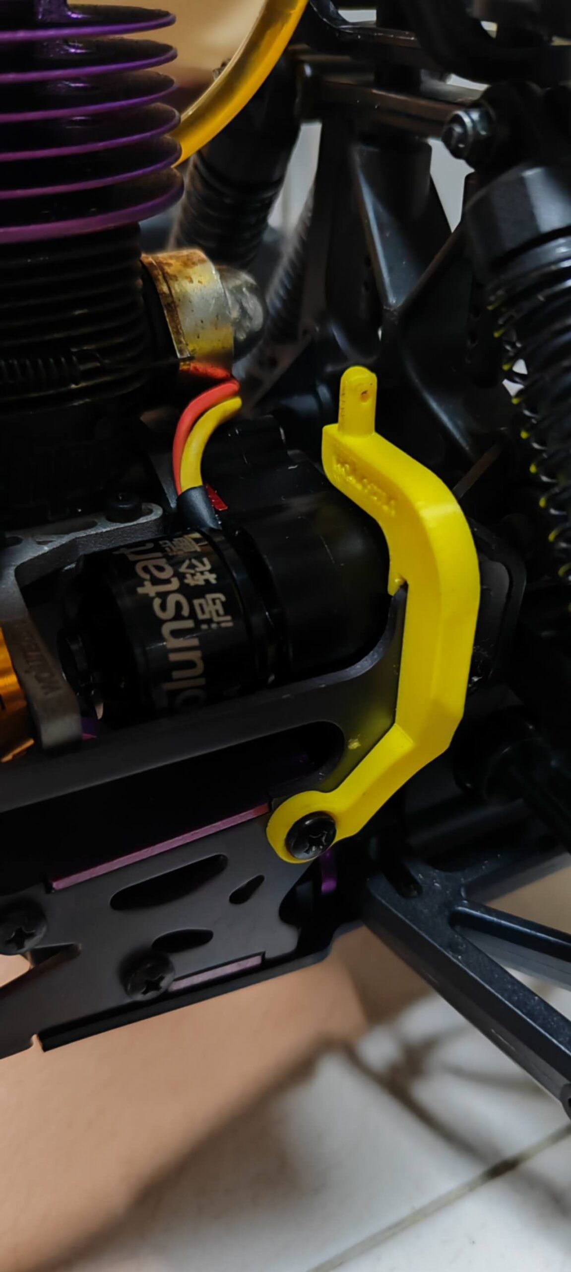 To install the wolunstart 1/8 electric E-starter on the HPI 4.6 RC, this mount is required to lift the fuel tank.